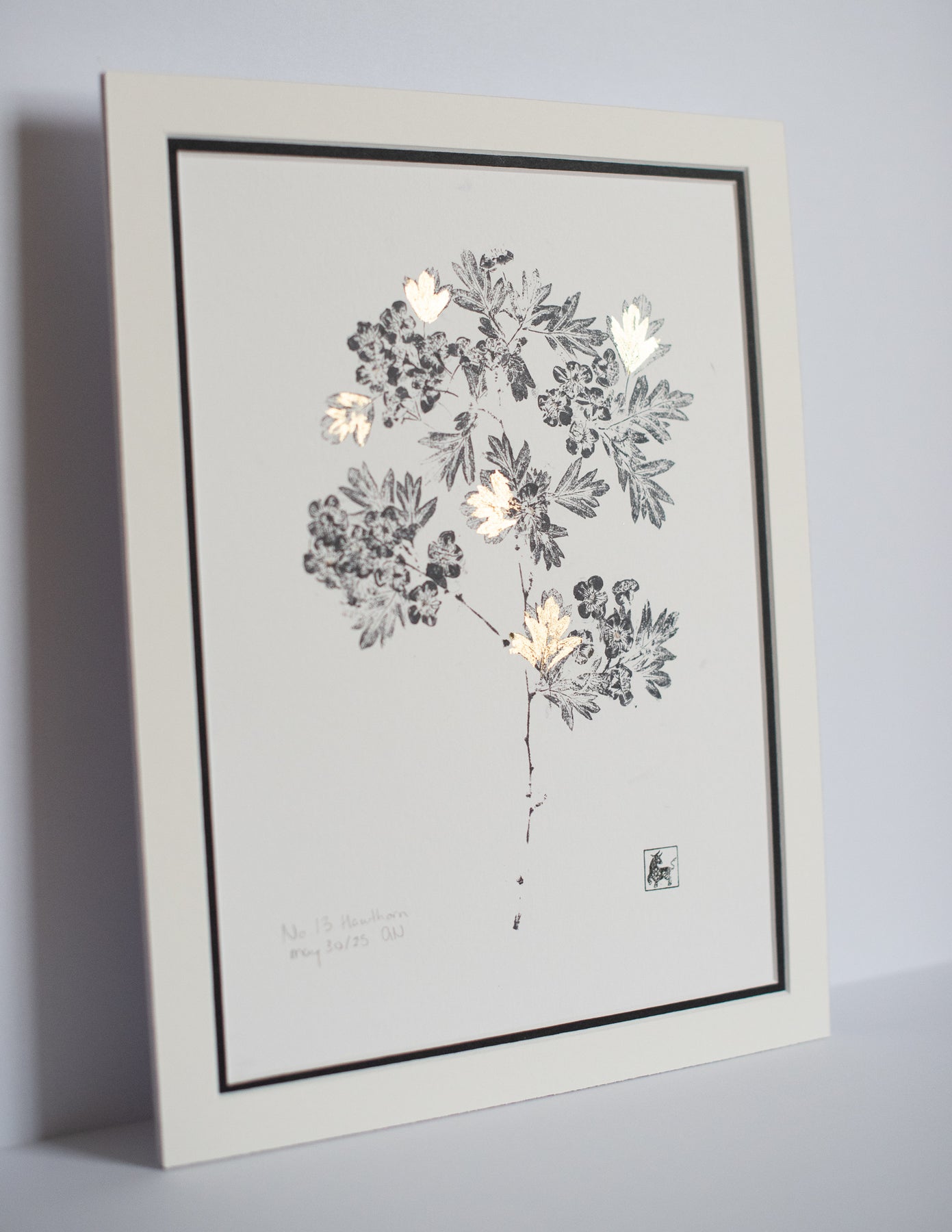 - Art is created by stamping the leaves and petals of the flower in ink and also gold leaf
