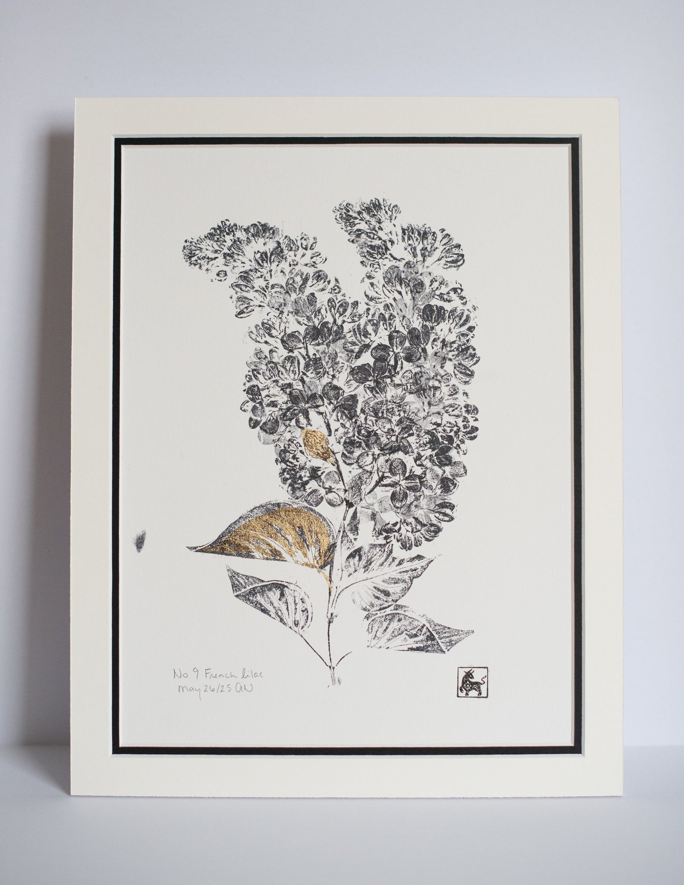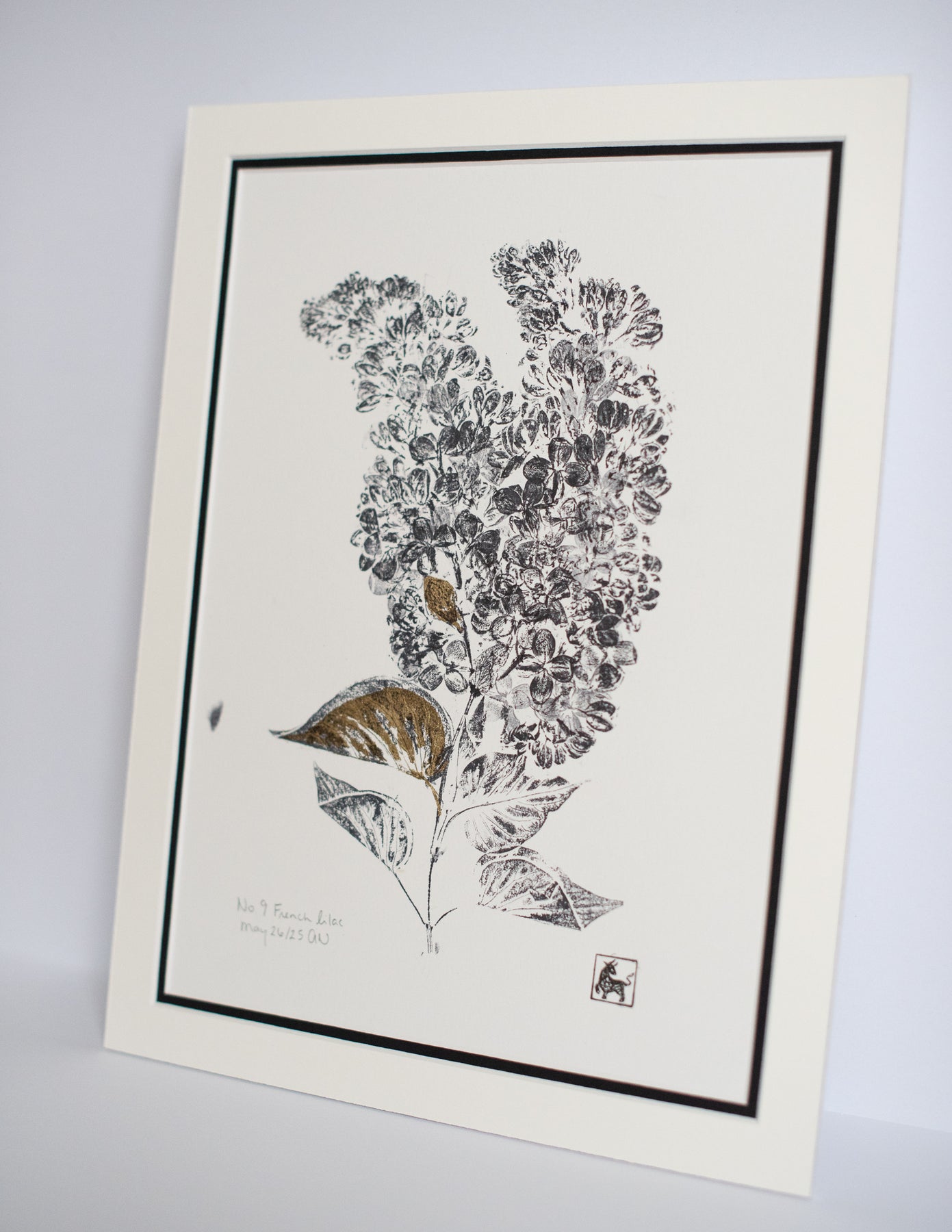 - Art is created by stamping the leaves and petals of the flower in ink and also gold leaf