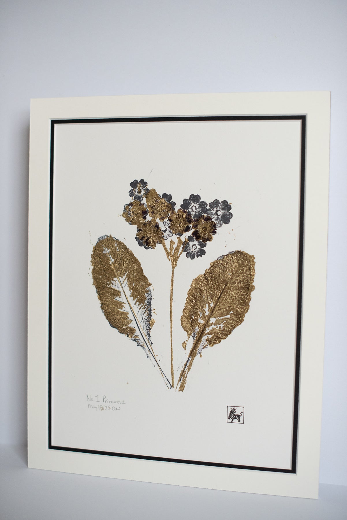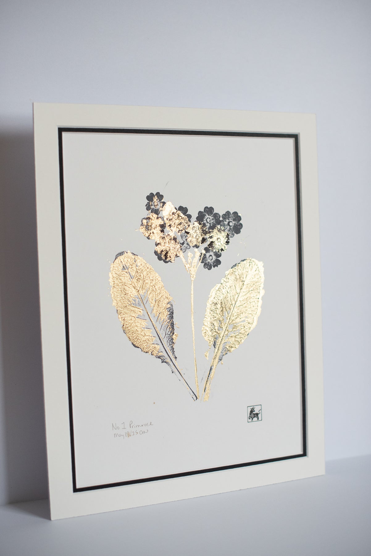 - Art is created by stamping the leaves and petals of the flower in ink and also gold leaf